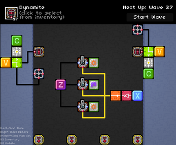 In this roguelike tower defense game, your weapons don't operate on their own, and it's not so simple as using the mouse to aim and fire them either. Instead, you're in charge of designing your own input scheme using circuits, wires, and logic gates. As you build more weapons, you'll need a clever design to avoid mixing them all up with your limited buttons.